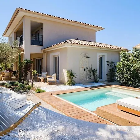 В Luxurious New Villa Pool Golf St Tropez Sainte-Maxime є тераса з видом на сад, а також приватний басейн.